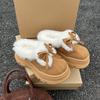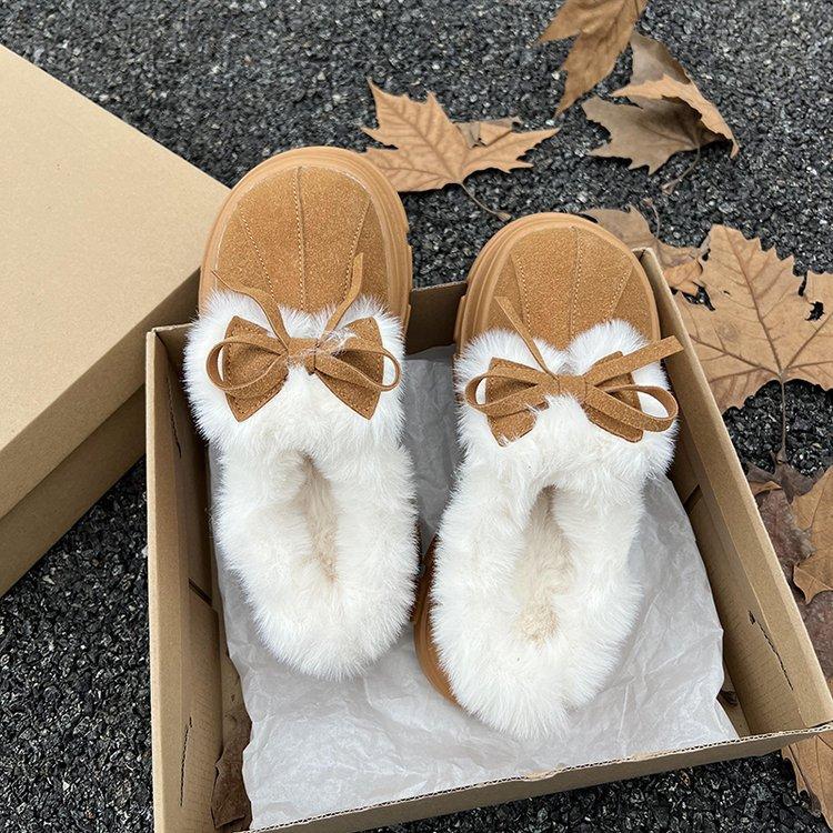 Weiche Lederversion~ Niedliche Schleife Ein-Pedal Halbzopf-Taschenkopf Baumwollschuhe Damen Samt Mode Dicksohlige Flauschige Schneestiefel
