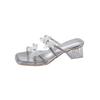 Silberne Strass coole Hausschuhe Damen Frühling 2025 neue Kristall dicker Absatz Temperament Hausschuhe Französische Premium Sandalen