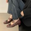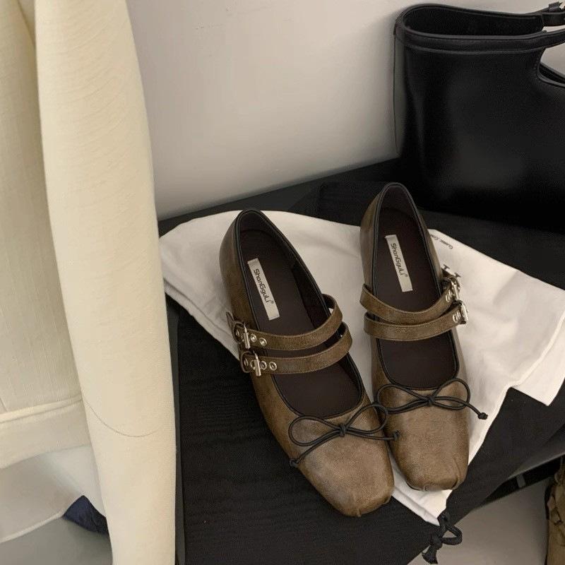 Französische Schuhe mit eckiger Spitze, flachem Ausschnitt und flacher Sohle für Damen, 2025 neu, retro mit Schleife, Mary Jane Schuhe, kleine Lederschuhe