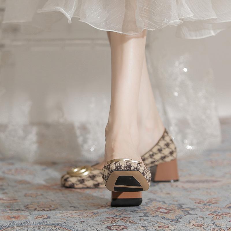 3326-3 Herbst und Winter Französische Retro Kleine Duftende Einzelne Schuhe Tausendvogel-Gitter Tweed Quadratischer Kopf Dicker Absatz Temperament High Heels Damen