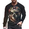3D Totenkopf bedrucktes Top Modische lässige langärmlige Herren-T-Shirts - Weicher, mittelelastischer Polyesterstoff Frühling und Herbst Relaxed Fit Kleidung