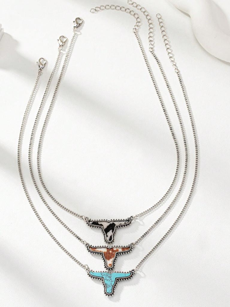 1 Stück Western-Stil Türkisstein Kuhmuster Lederdekor Rinder Kuhkopf Halsketten Set für Frauen