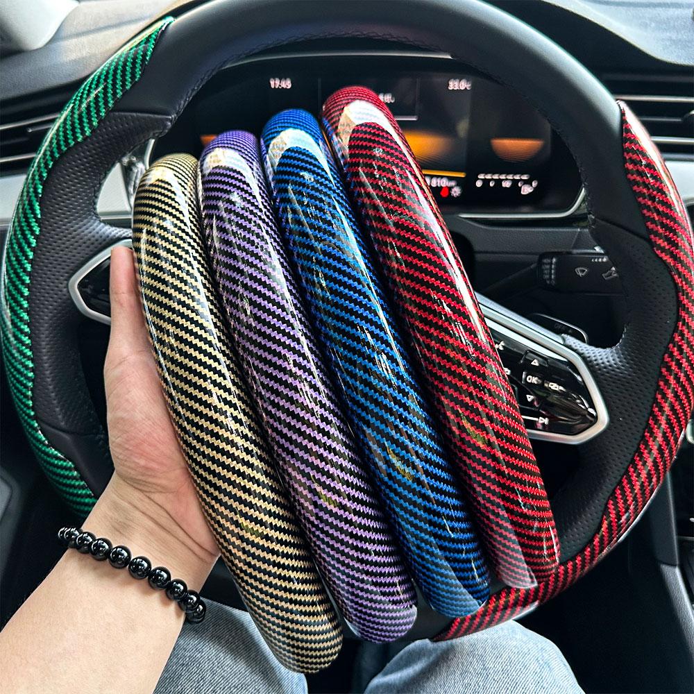 2 Stück Kohlefaser Auto Lenkradbezug Rutschfester Lenkradschutz Staubdicht Waschbar Innenraumzubehör Rund oder D