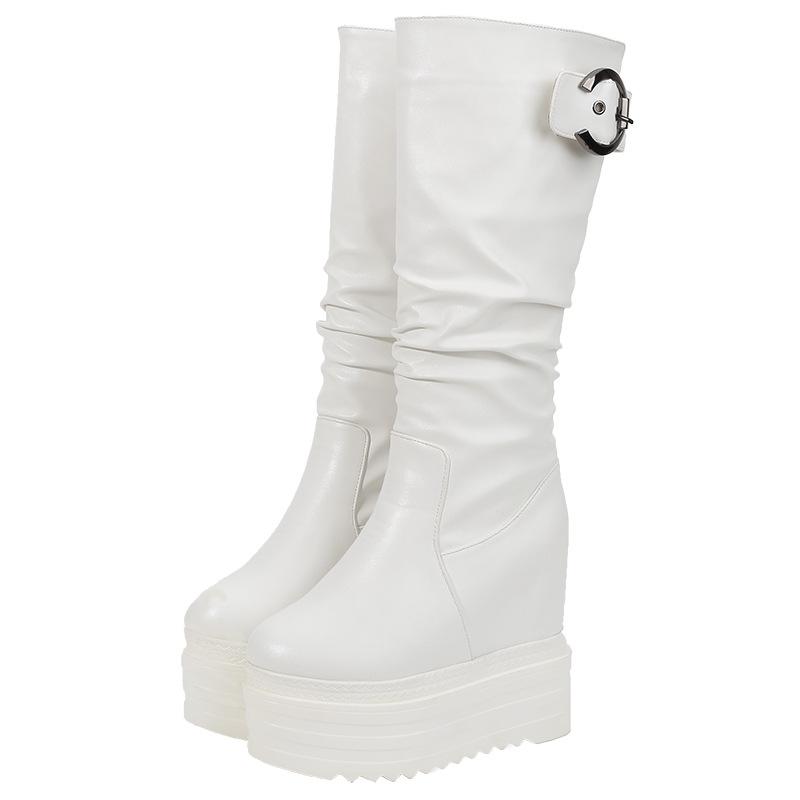 2025 13CM Höhenverlängernde Damen High Heels Schwarz Weiß Mittelhohe Dicke Sohle Dünne Hohe Stiefel ZYW-559-16