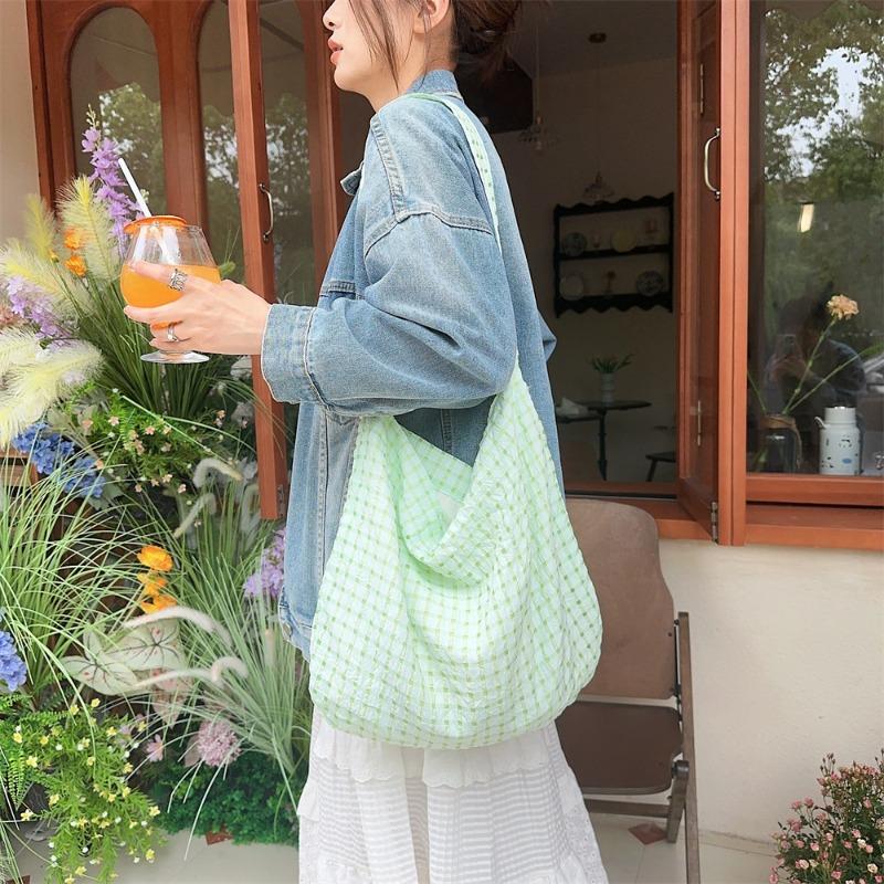 1 Summer new hollow bubble plaid shoulder armpit bag canvas bag fresh candy color messenger bag