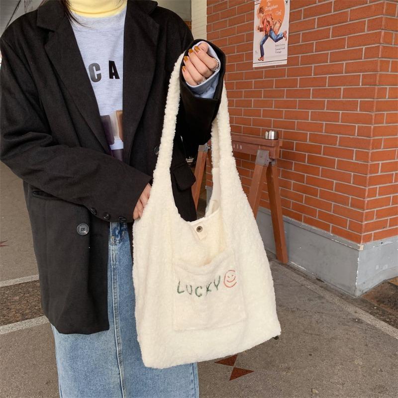 103 Winter niedlich Plüsch Außentasche bestickte Westentasche große Kapazität Lammwolle Schulterhandtasche