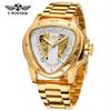 WINNER Herren Automatikuhren für Herren Luxus Hohl Dreieck Herren Mechanische Armbanduhren Skelett Wasserdicht Reloj Hombre