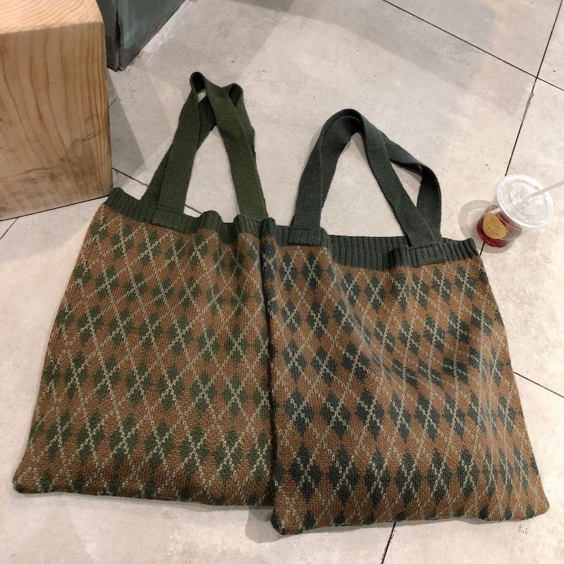 01 Neue niedliche Hyunya-Stil Studenten Strick Tragetasche Wolle Schulter Damen Stofftasche
