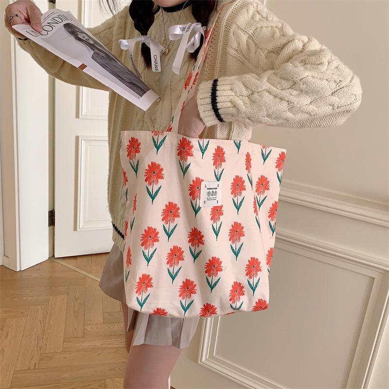 1 niche retro flower crossbody canvas bag casual shoulder bag literary portable tote