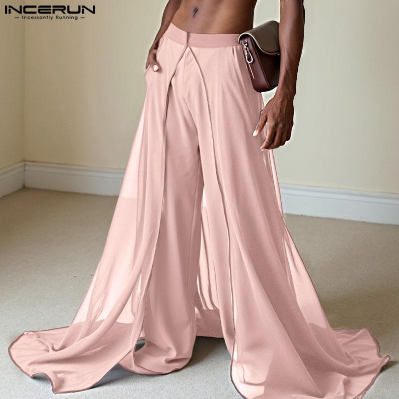 INCERUN Herren Elastischer Bund Doppellagig Patchwork Lässig Maxi Weitbein Hose
