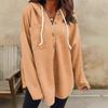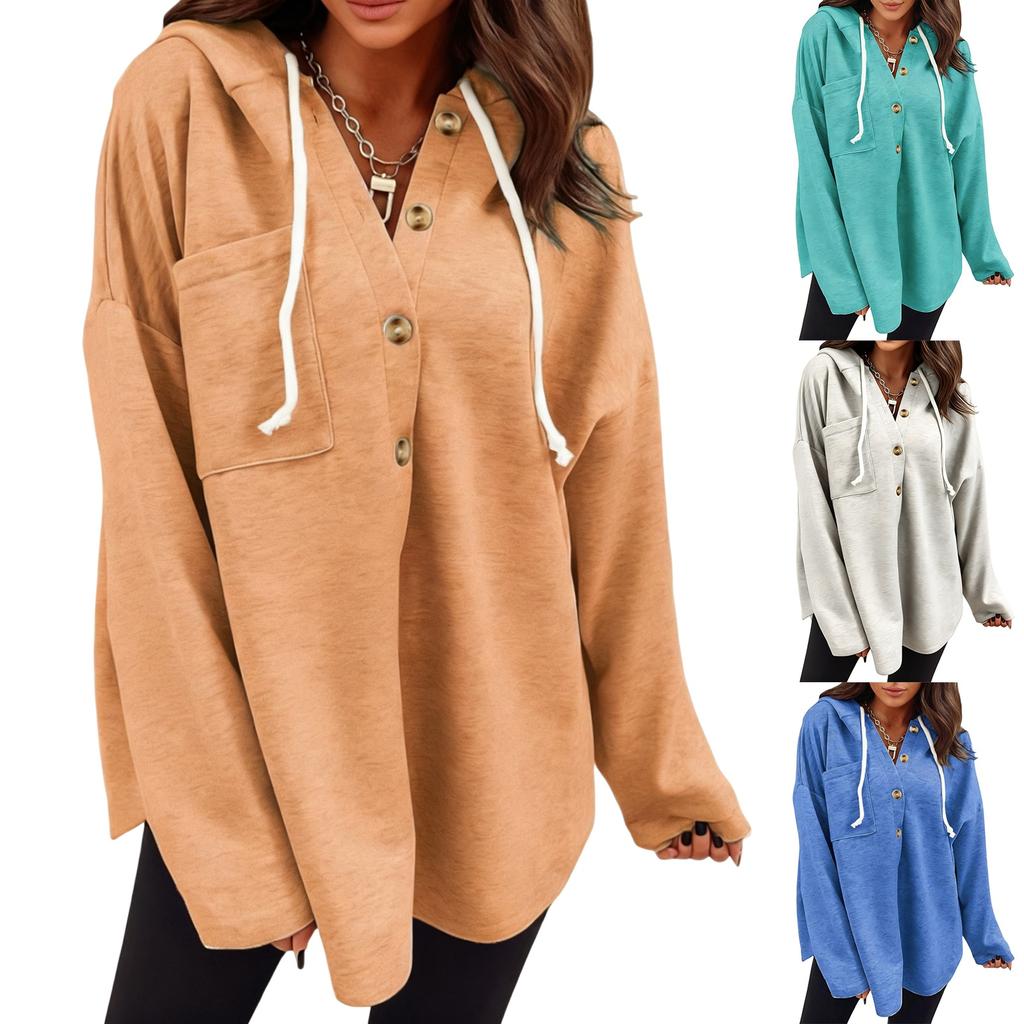 Damen Casual V-Ausschnitt Kapuzenpullover mit Taschen, Pullover, Lockere Passform, Einfarbig, Langärmige Oberbekleidung