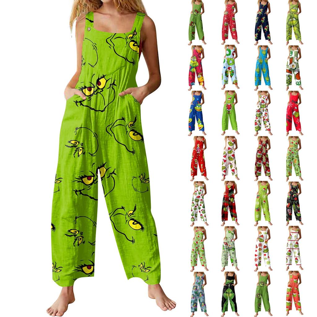 Damen Lässige Overalls Jumpsuits Verstellbare Träger Ärmellos Weihnachtsprint Bequeme Einteiler Mit Tasche