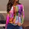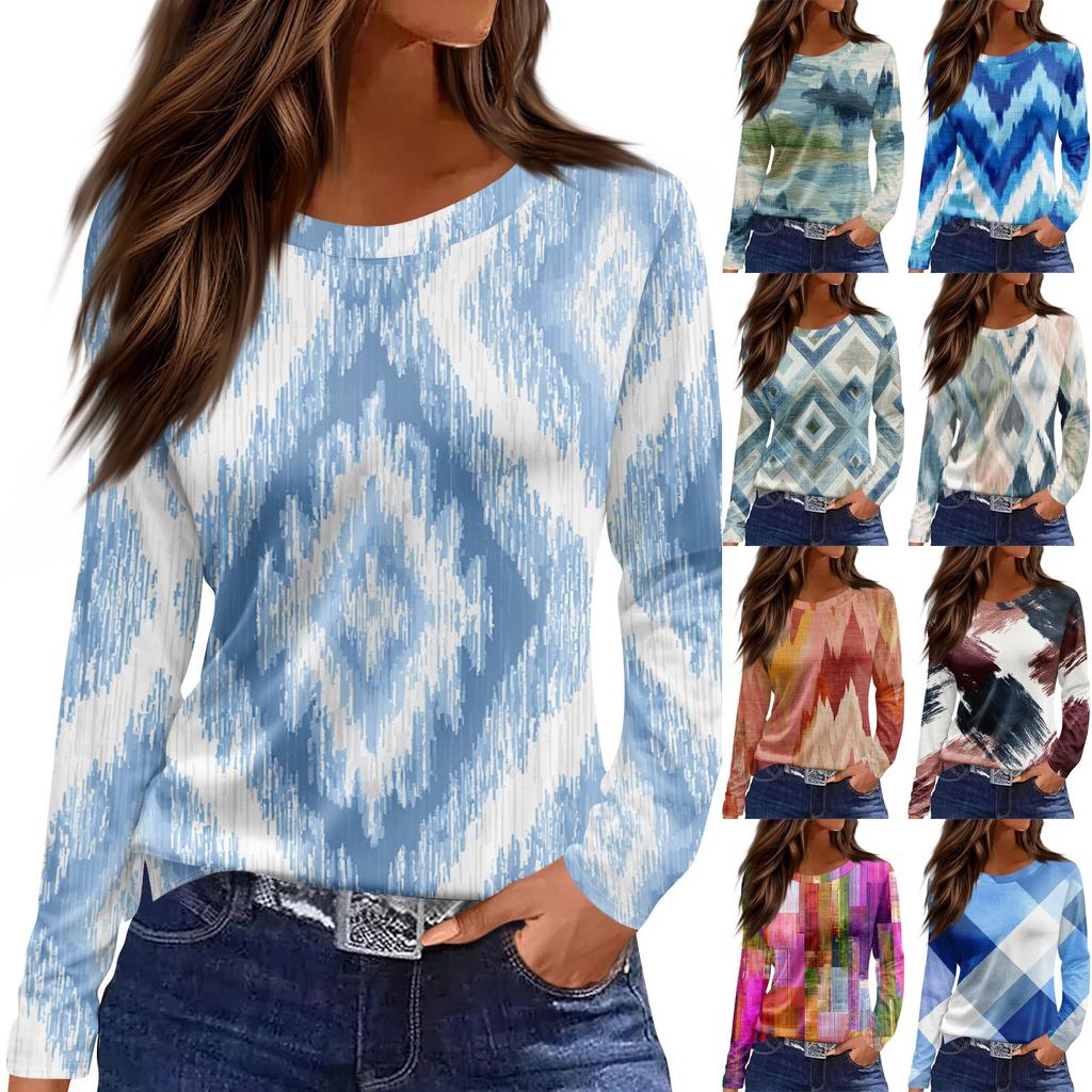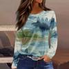 Damenmode Saum Schlitz Lässig Blumendruck Rundhals Langarm Top