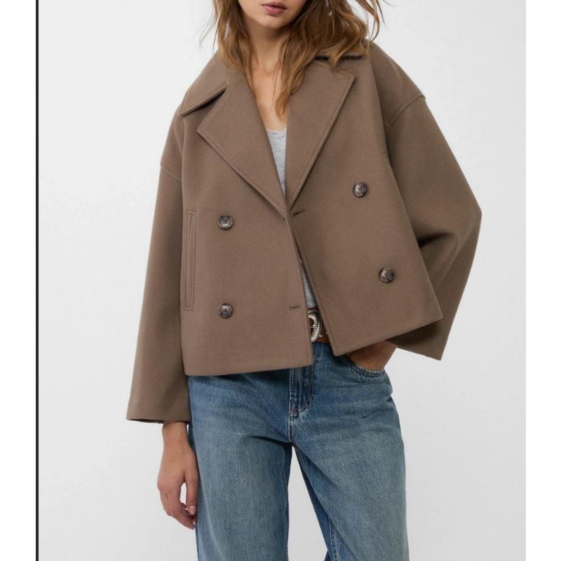 Herbst Winter Einfarbig Umlegekragen Lässige Mode Strickjacken Blazer Damen Knöpfe Mantel Jacke Oberteil