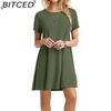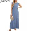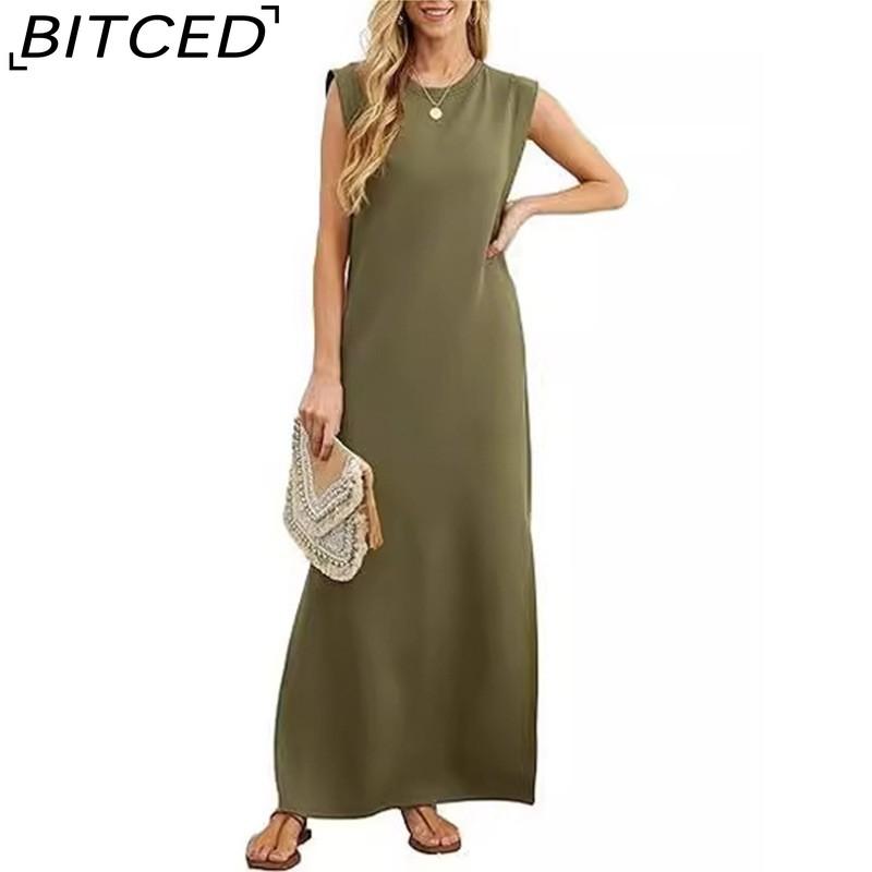 BITCED Women's Summer Solid-Colour Casual Loose-Fit Pocket Dress Long Dress