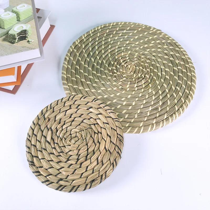 HeMu Strohgedeckte Tischmatte Verdickte Isolationsmatte Strohgedeckte Gewebte Tischmatte Sandtopfmatte Heim- und täglicher Gebrauch Sandtopfmatte Schüsselmatte