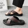 Herren Hausschuhe Übergröße Mode Outdoor Casual Strand Pantoletten Luxus Rindsleder Hausschuhe für Herren Rutschfeste Flache Pantoletten