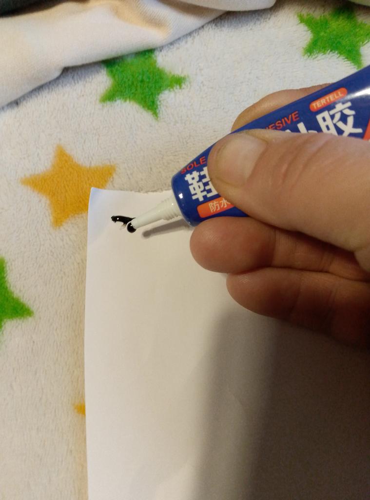 Die Klebertube kam fast leer an. Die Flüssigkeit darin hat eine schwarze Farbe und sieht nicht nach Klebstoff aus. Der Kauf hat enttäuscht.