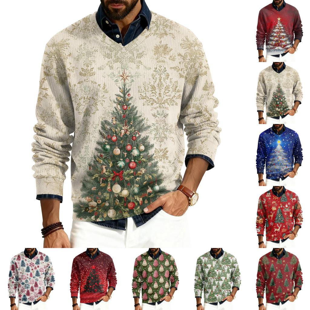 Herren V-Ausschnitt Langarm Rippstrick Pullover
