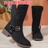 Damen Mid-Calf Stiefel Retro Ethno Stil Sommer Coole Stiefel Atmungsaktive Aushöhlungen Mesh Stiefel Klassische Western Cowboy Stiefel für Damen