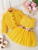 2-teiliger bedruckter Anzug für Kinder, kurzärmelig, Oberteil mit Knopfleiste, weite Hosen, Pyjama-Set, lässiger Home-Anzug