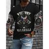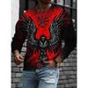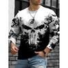 Rundhals 3D Schädelmuster Oberteil Lässige Langarm Herren T-Shirts - Weicher Mittlerer Stretch Polyesterstoff Frühling und Herbst Relaxed Fit Kleidung