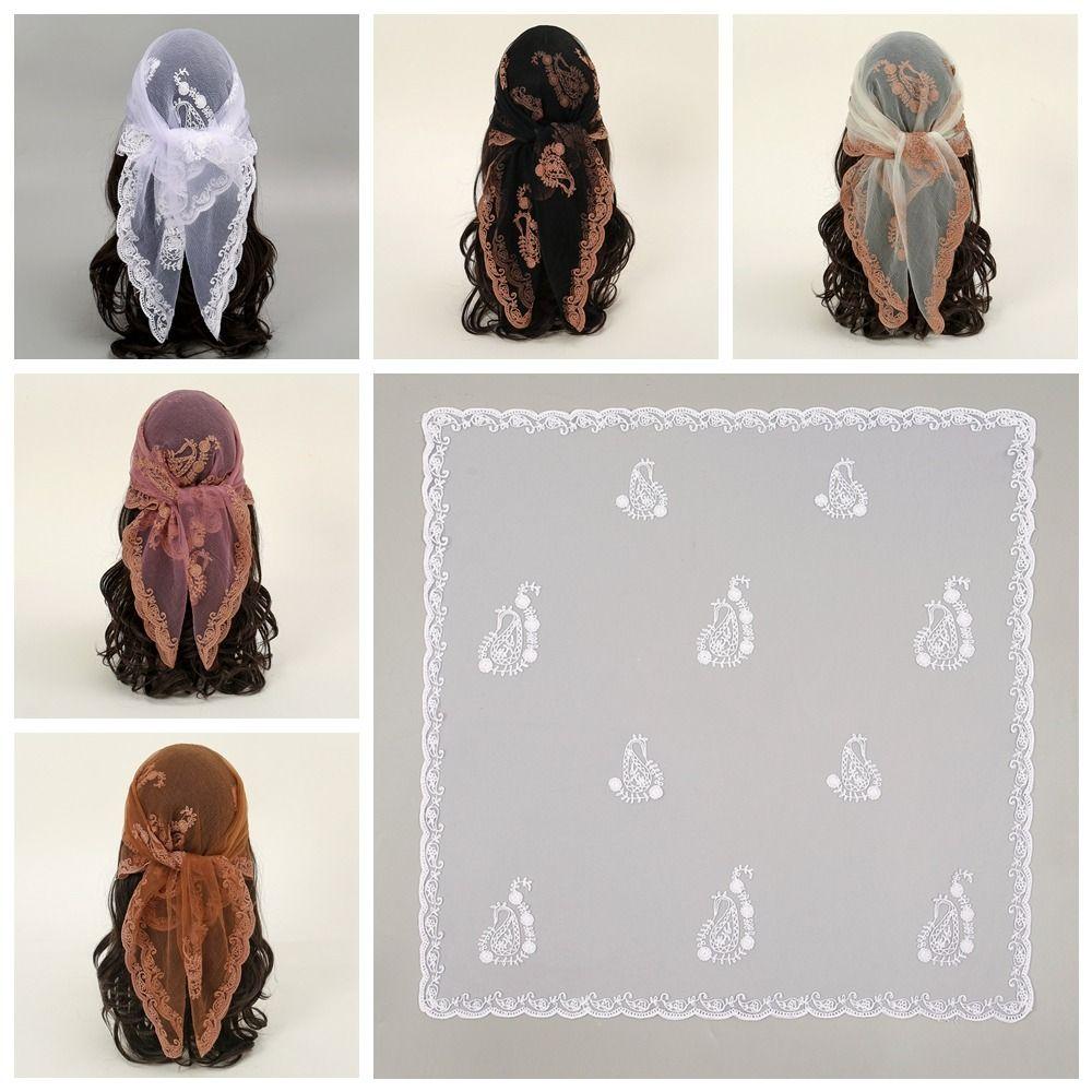 Hollow Out Foulard Bandana Floral Embroidery Lace Handkerchiefs Elegant Hair Scarf Headband Women