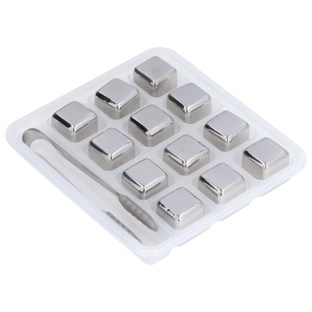 12 Stück Whiskey-Steine mit Zange Aufbewahrungsbox Wiederverwendbares Edelstahl Getränke Eiswürfel Set für Heimbar-Nutzung