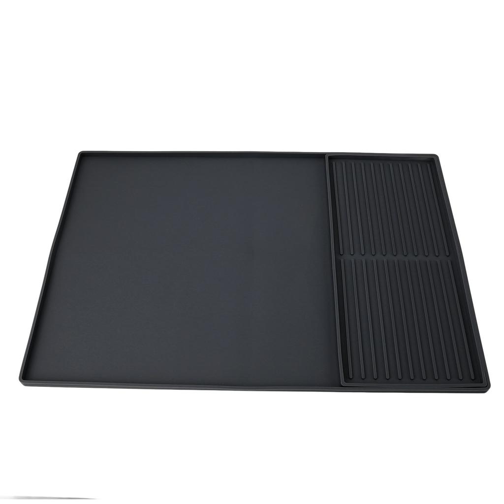 Kaffeemaschinen-Barmatte Hitzebeständige Silikon-Doppelzonen-Trockenmatte und Abtropfschale für Küchenarbeitsplatte Schwarz
