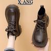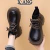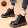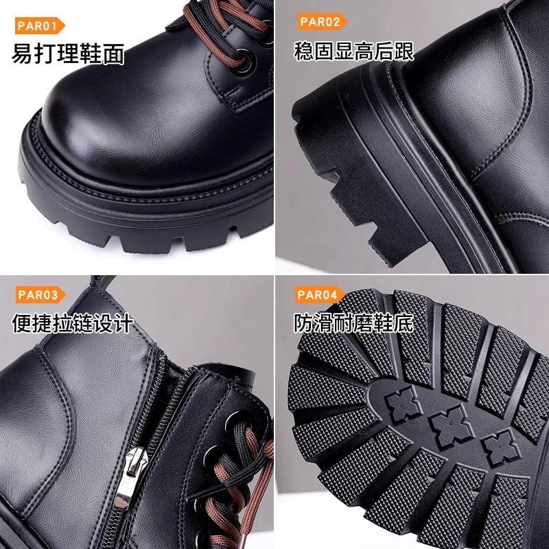 Leder Martin Stiefel Kinder Herbst und Winter neue dicksohlige erhöhende kleine Damenstiefel Fleece warme Kurzstiefel