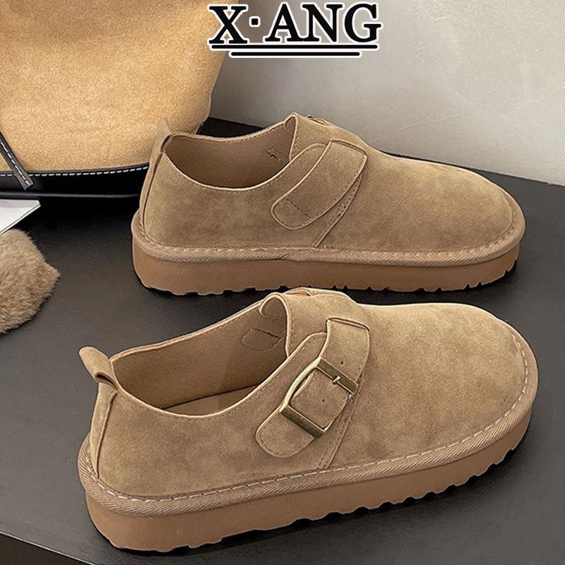 Damenlederschuhe Frühling neue einpedalige weichbesohlte Einzelschuhe Plateau Beanie-Schuhe