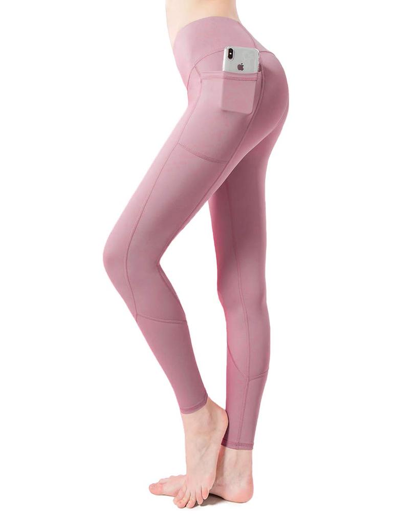 THREENINE Kompressionsleggings mit Yoga Sport Lang Schön Einfarbig Lange Länge Damen Hochtailliert Taschen, Hosen, Fitness, Training, Stretch,