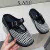 Leder hohle gewebte Tasche Kopf Hausschuhe Damen Sommerbekleidung neue weiche Sohle rutschfest Damen kühle Hausschuhe