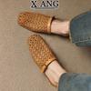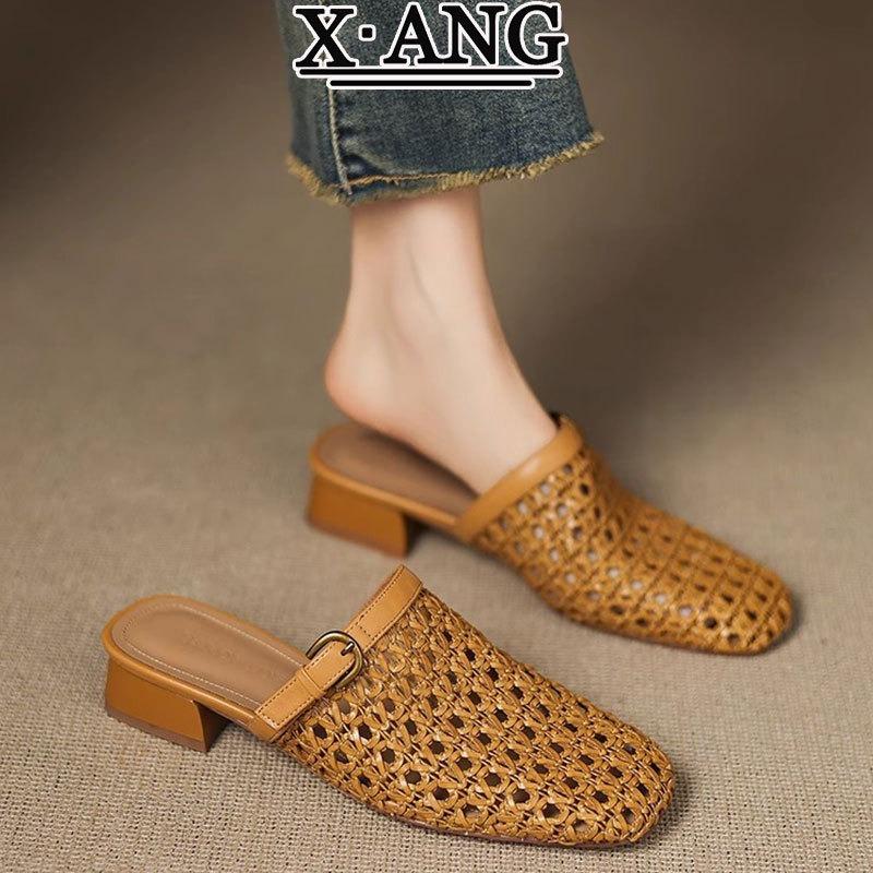 Lammfell-Version handgewebte hohle atmungsaktive Tasche Kopf Halbschuhe Oberbekleidung Sommer Dicke Ferse Schuhe Niedrige Ferse Einzelne Schuhe