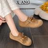 Damen-Lederschuhe mit weicher Sohle, Vollbrötchen-Schuhe, Känguru-Schuhe, Herbst-Neuheit, Ein-Pedal-Einzelschuhe, Doudou-Schuhe
