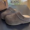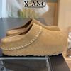 Rindsleder Innenhöhe Erhöhung Dicke Sohle Damen Samt Thermische Baumwollschuhe Ein Pedal Lammwollschuhe Taschenkopf Halbschuhe