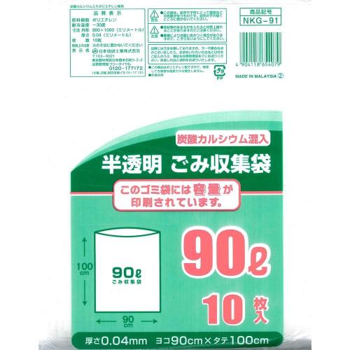 Nippon Giken Kogyo Semi-Transparent Garbage Bags, 90L, Pack of 10, NKG-91