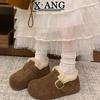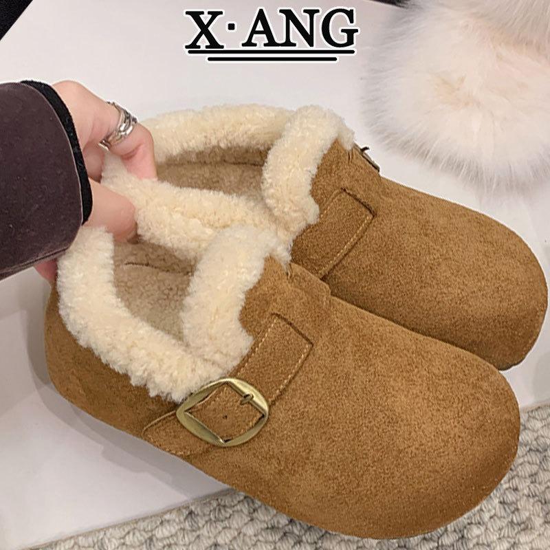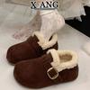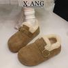 Damen-Samtschuhe mit dicken Sohlen, komplett aus Rindsleder, gefüttert mit verdickter Thermobaumwolle, Slipper aus Lammwolle