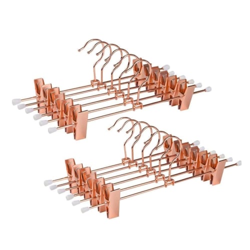 Amber Home Rose Gold Trouser Hangers, 20-Piece Set, Skirt Hangers, Steel Hangers for Bottoms, Pants, Slacks, and Towels, Durable Metal with Adjustable