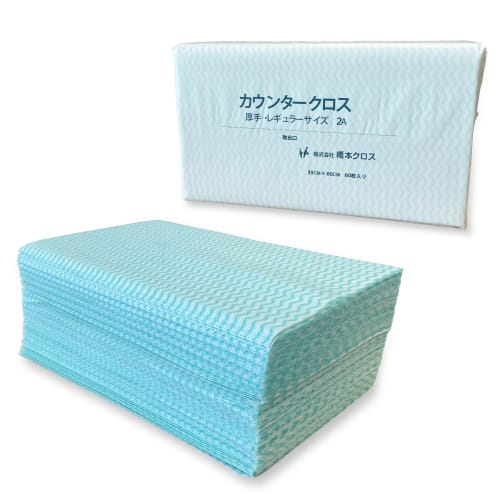 Product Introduction ●A high-quality counter cloth that is easy to use and economical because it removes dirt easily, is wear resistant, and has low lint.●The cross-layer manufacturing method provides excellent vertical and horizontal strength, and the drying speed is fast, reducing bacterial growth.●With a wide variety of colors and sizes, it can be used in a variety of situations, such as color-coding according to the location of use, and is also useful for hygiene management.●[Applications] It can be conveniently used as a table cloth, for wiping dishes, for absorbing moisture and oil during cooking and processing, for cleaning cupboard sheets, in the kitchen and at home, and in medical settings, offices, and restaurants.Raw materials/components Rayon, polyester