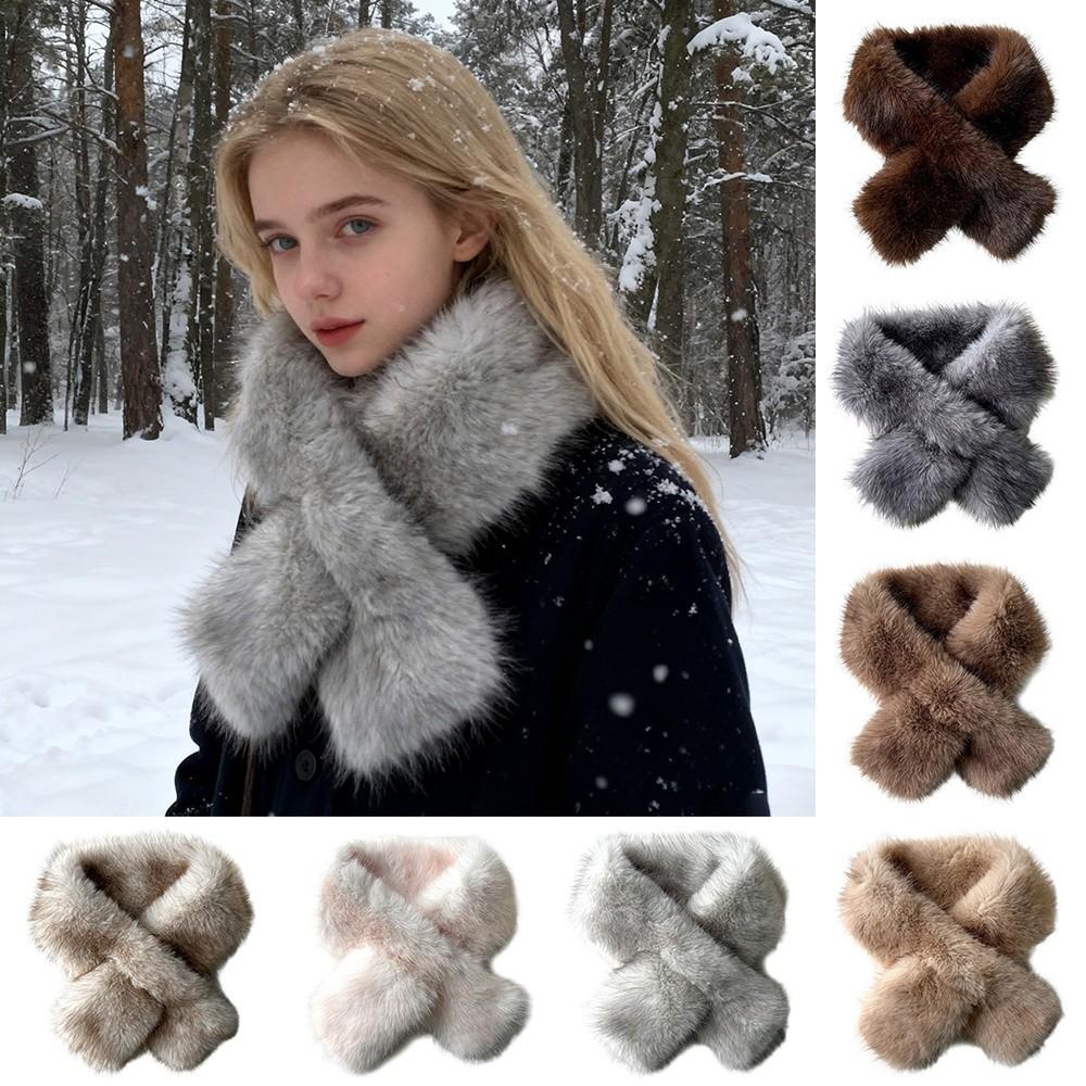 Kunstfuchs Pelz Kreuz Schal Verdicken Halstuch Wickel Mode Halstuch Damen Mädchen