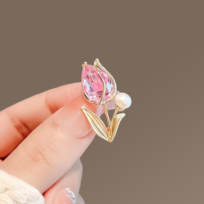 Elegante Tulpenbrosche, Damen-Imitatkristall-Korsage, Nischendesign-Sinn, Anstecknadel, Blendfreier Verschluss am Ausschnitt