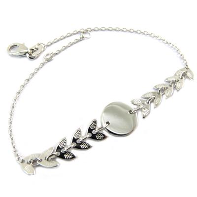 [R3742] - Silbernes 'Blätter'-Armband (Rhodium) - 7x4mm