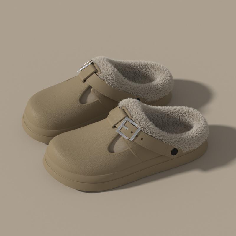 2025 Mode Herbst und Winter dicksohlige Plüschschnalle thermische Baumwollpantoffeln lässige neue Schuhe