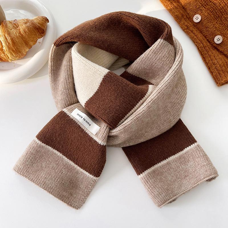 Soft Touch Korean Chic Color blocked Striped Scarf Japanese and Korean Retro Long Winter Warm Knitted Scarf for Men and Women