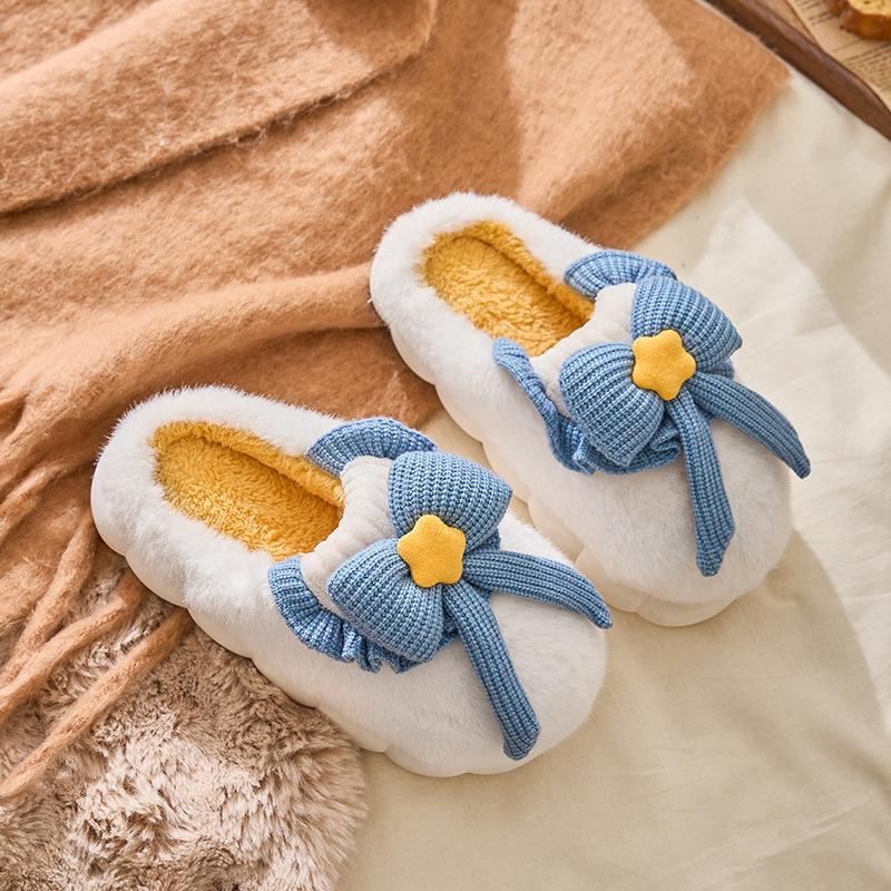 Rutschfeste Baumwollpantoffeln Winter Zuhause Kalt Halbe Packung Niedliche Schleife Warme Pantoffeln Baumwolle Winter