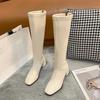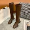 Maogu Damen Damen Gummischuhe Sexy Quadratischer Absatz Oberschenkelhohe High Heels 2025 Luxus Winter Stiefel mit Absatz Neue Schwarze Knielange Stiefel
