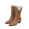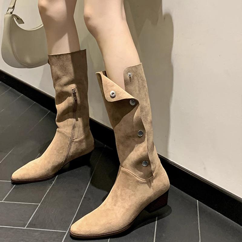 Spot second hair~ Pile boots 2025 new autumn and winter thick heel medium tube western fold knee boots