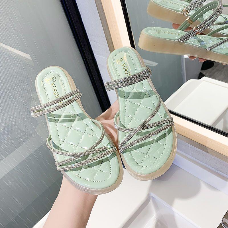 Zwei tragen Feenstil-Sandalen, Damen 2025 neue Damenmode Keilabsatz Strass trendy vielseitig coole Hausschuhe, Damen Sommer tragen