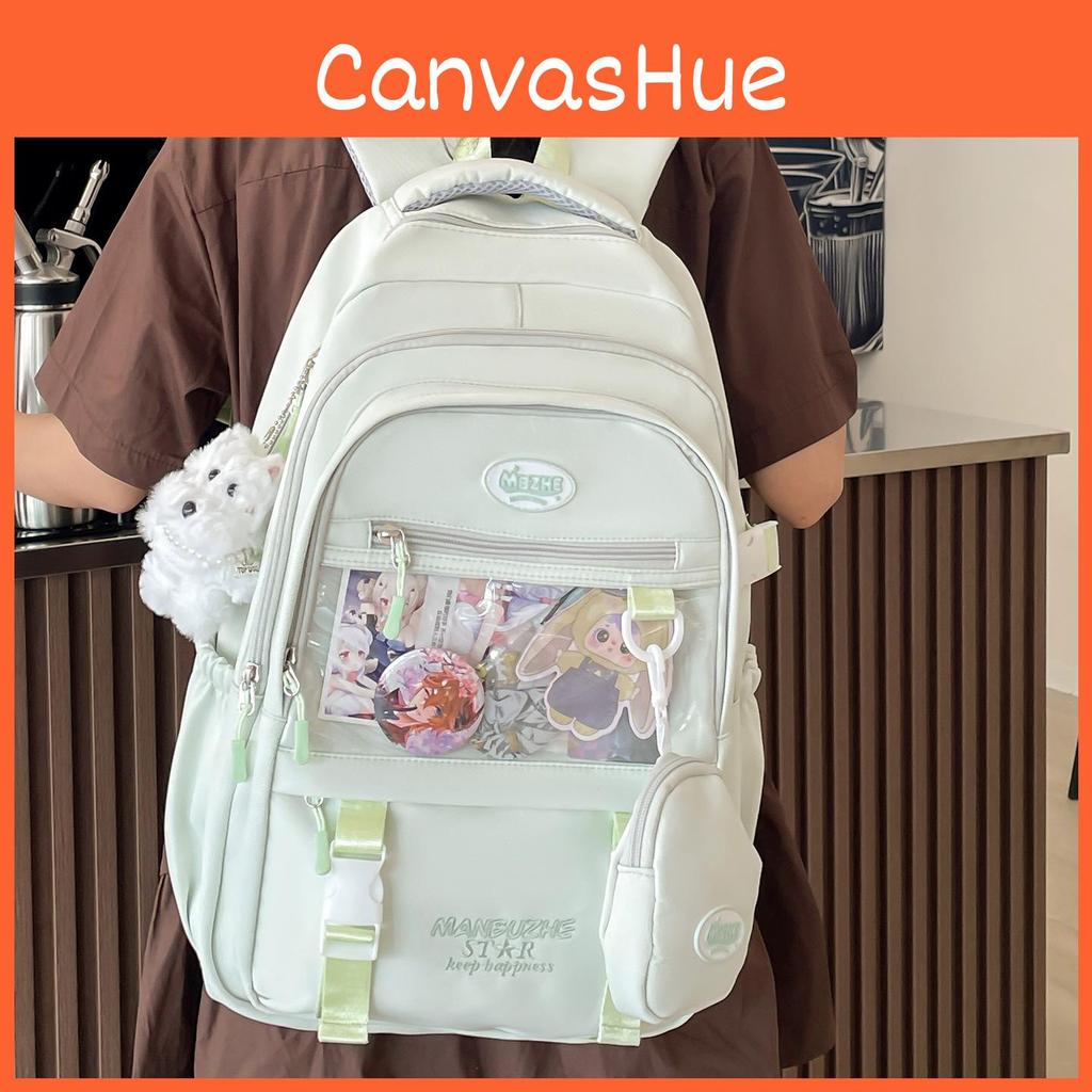 Color Solid Simple Letter Embroidery Student Backpack With Pendant And Badge